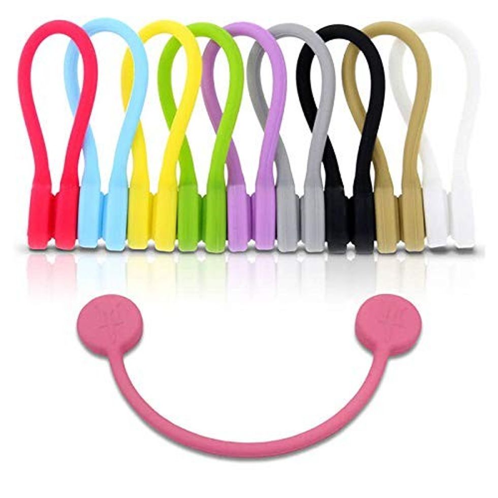 Stay organized and eliminate clutter with these vibrant and versatile magnetic twist ties. Perfect for wrangling electrical cords or keeping other small items in order, these ties are so handy that you might need to stock up with a 10-pack.