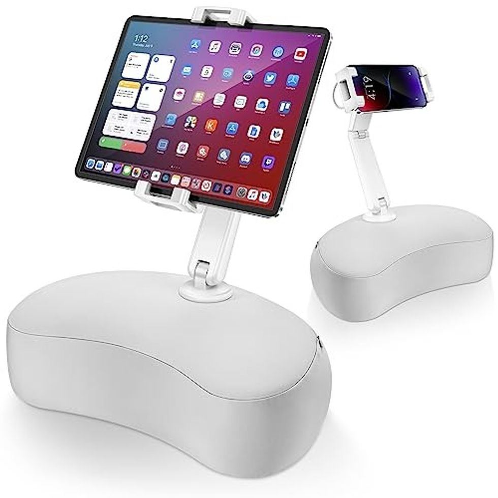 This simple tablet holder is the ultimate way to use your iPad or tablet on the couch or in bed. The holder has a comfy pillow on the bottom that keeps it right at eye level.