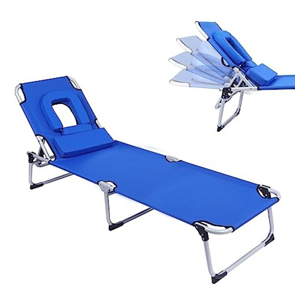The perfect beach chair that will make you want to stay all day long. It even has a handy head space for when you're laying on your stomach.