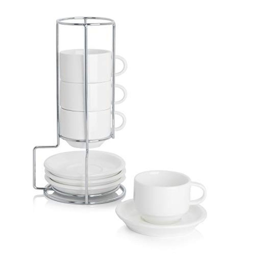 This coffee cup stand kind of looks like it belongs at a hotel breakfast, but it's actually a convenient way to store coffee cups for the whole family.