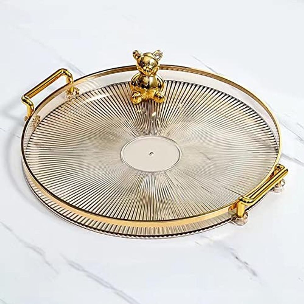 Whether you use this serving tray to display your perfumes, organize your jewelry, or rest your knick-knacks, it is guaranteed to serve as an elegant piece in your home. The gold accents are guaranteed to create a bougie touch in any room.