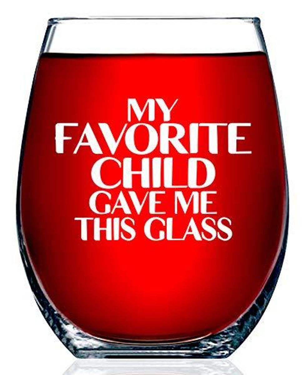 If you're looking for a funny mom gift, then look no further! This personalized Funny Wine Glass is the perfect way to let mom know you're her favorite child right. Each glass holds 15 fluid ounces, making it the perfect size for any beverage. It'll be sure to put a smile on her face every time she reaches for it.