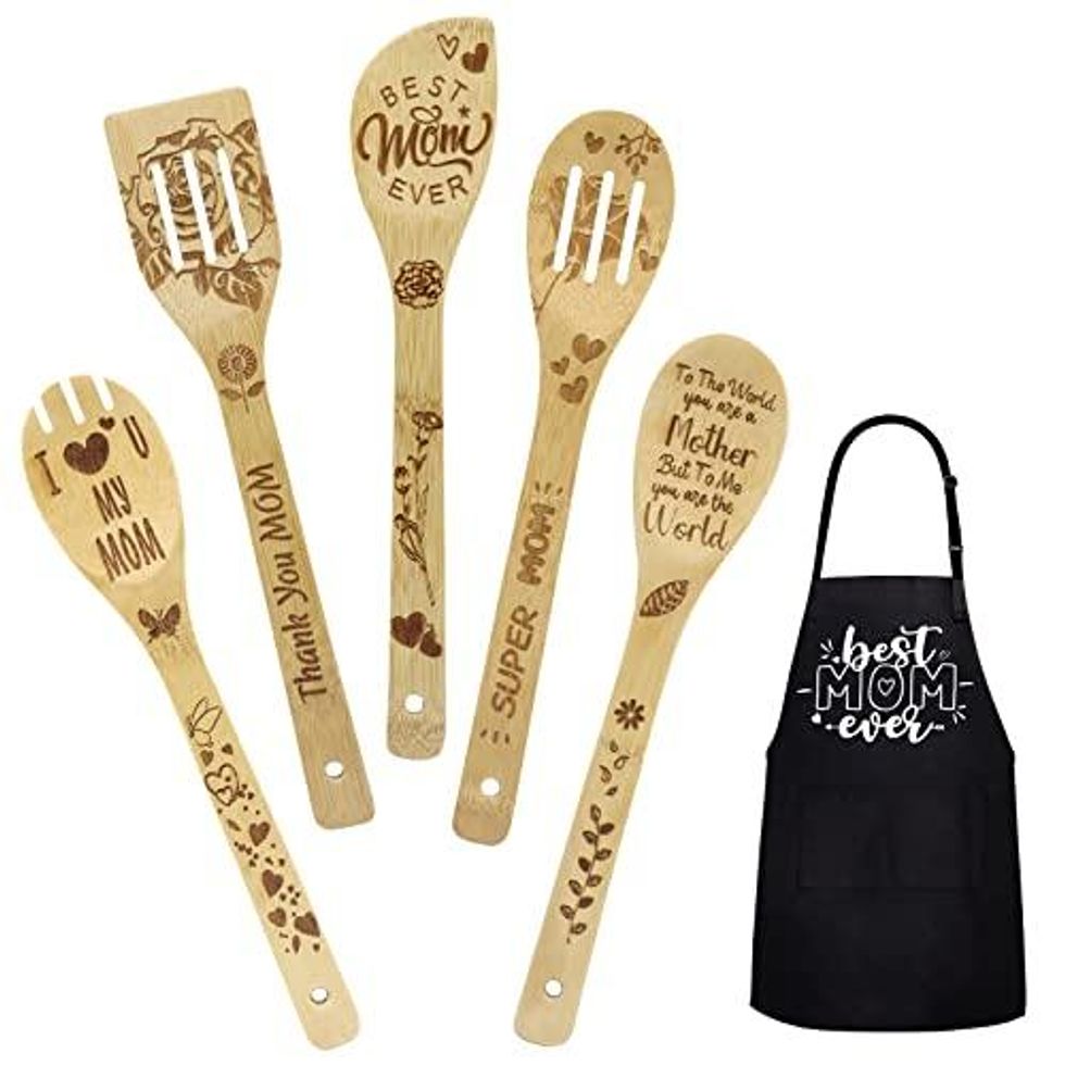 There is no better way to celebrate your mom than with a set of Wooden Cooking Spoons she will use and cherish every time she cooks. This unique wooden spoon set for cooking is handcrafted from 100% natural bamboo, easy to clean, durable, and non-toxic so you can feel good about gift-giving them.