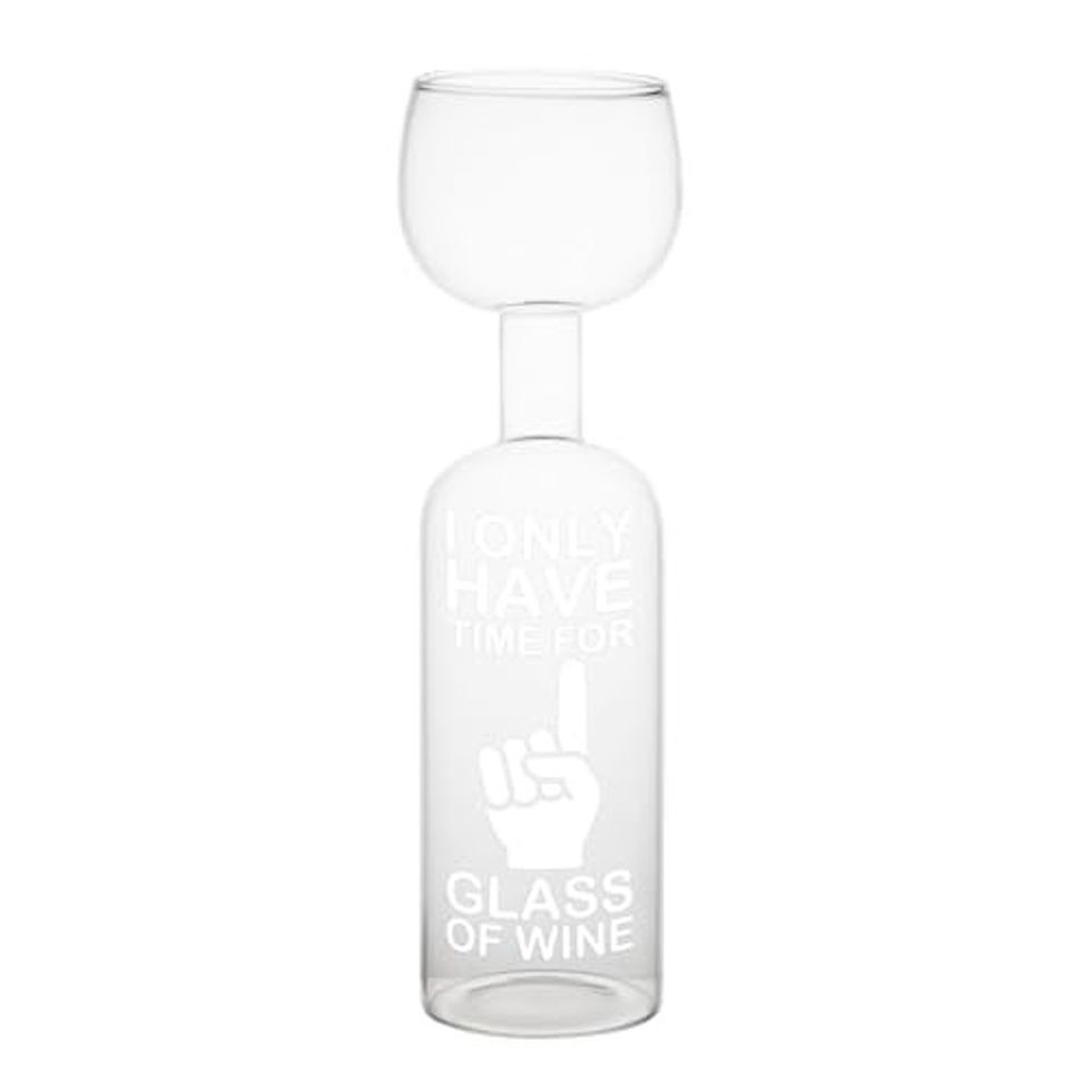 The BigMouth Inc. glass, humorously declaring, "I Only Have Time for 1 Glass of Wine," holds an entire 750mL bottle. This oversized glass is a charming gift for wine enthusiasts who enjoy a good chuckle. Perfect for unwinding or adding fun to weekend gatherings.