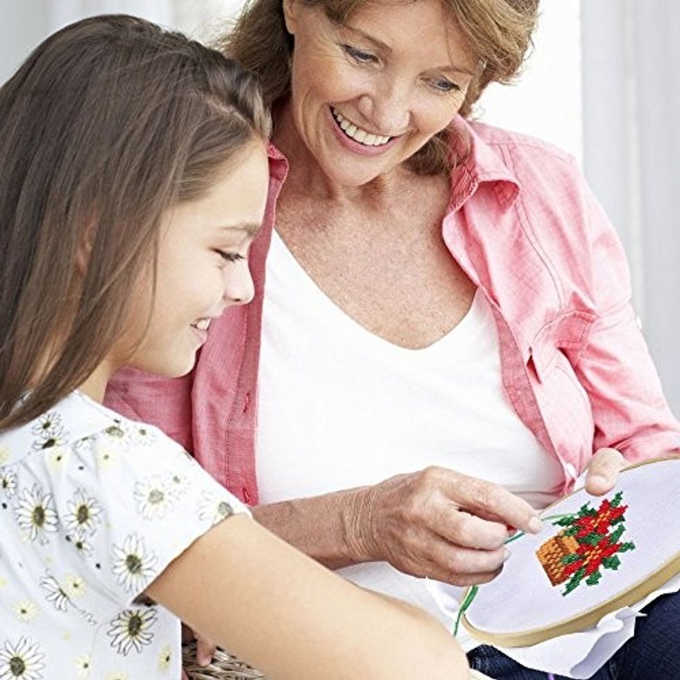 Reviewers personally attest to the fact that this embroidery kit is excellent for beginners. It includes five hoops with different diameters and 50 colors of threads for variation, cotton Aida fabric, embroidery needles, and more – everything needed for them to make beautiful hand-stitched masterpieces.
