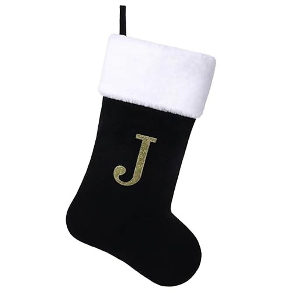 Go black with this embroidered stocking. Adorned with handmade stitching and an embroidered letter for a luxe, high-end feel, they also have plenty of room for Christmas presents.