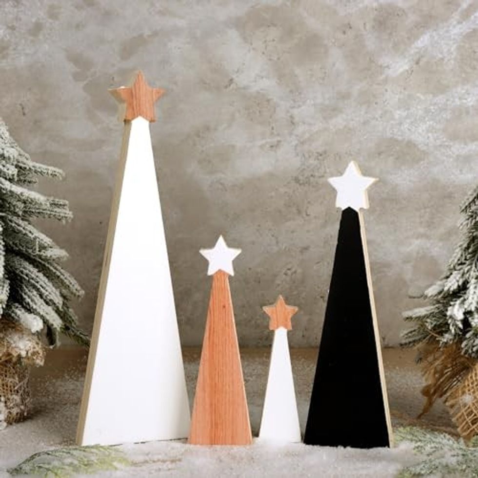 These Christmas trees are shaped out of wood and lean into a minimalist holiday vibe. They're each different heights and have a thick base to stand on their own, and they look great clustered together and can make a great table centerpiece.