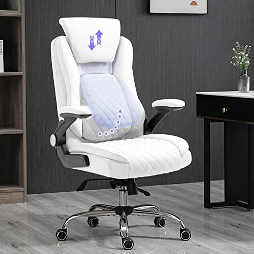 There are so many reasons to fall in love with this office chair. For one, it offers an ergonomic design with an adjustable lumbar support and headrest. Plus, the faux leather upholstery is plush, durable, and resistant to stains and cracks, so it will always look pristine.
