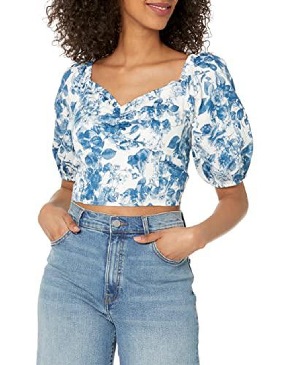 The puff sleeves, the vintage floral print, the sweetheart neckline...everything about this smocked top from The Drop is romantic perfection. Made from 100% cotton, it'll be your new go-to for every outing this summer. One recent review says, "This blouse can be dressed up with a skirt or pair with shorts for a put-together yet casual look. Great for a summer evening get-together."