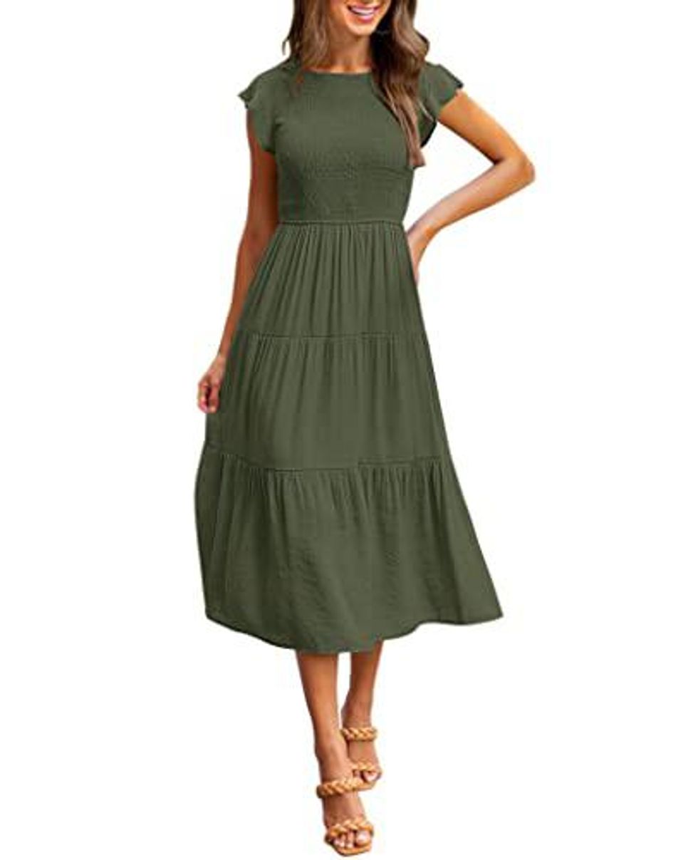 If there's anything your summer wardrobe needs, it's a classic dress that never goes out of style. This flutter sleeve smocked midi dress works for every occasion and will have you feeling confident every time you wear it. Choose from so many amazing colors — or buy several! — for a style that will carry you through summer after summer.