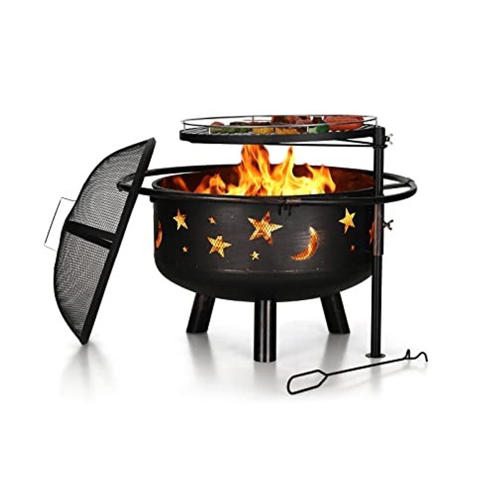 See it on AmazonStart Cooking And Enjoy A Cozy Ambiance With A Outdoor Wood Burning Firepit with Cooking Grate
