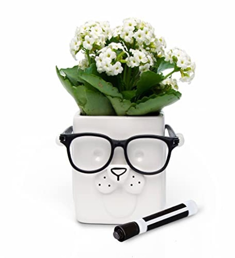 The puppy planter is an adorable and versatile item. It can be used as a plant pot, pen holder, or remote control storage. Customize it with dry-erase markers for added fun. A charming and functional piece for any space.