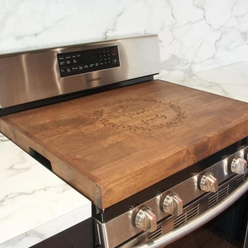 Don't worry; you don't have to make homemade pasta to have a noodle board, aka a stove top cover. If you don't use your stovetop much and could benefit from more counter space, a noodle board may be just what you need. The one shown here from J Thomas Home can be customized by selecting the stain color and the personalization design.