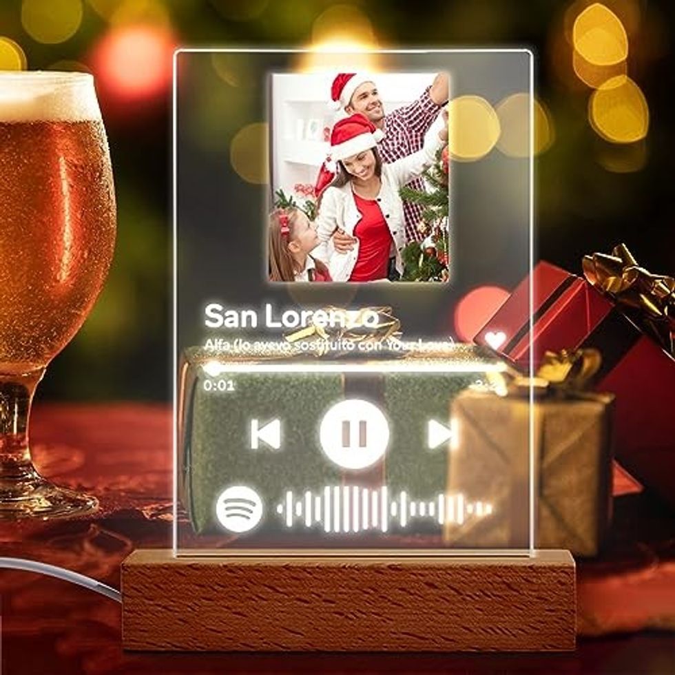 Personalize a gift with this glass plaque featuring a beloved song. It's a modern take on a mixtape, providing a visual and sentimental nod to a special tune that means the world to someone.