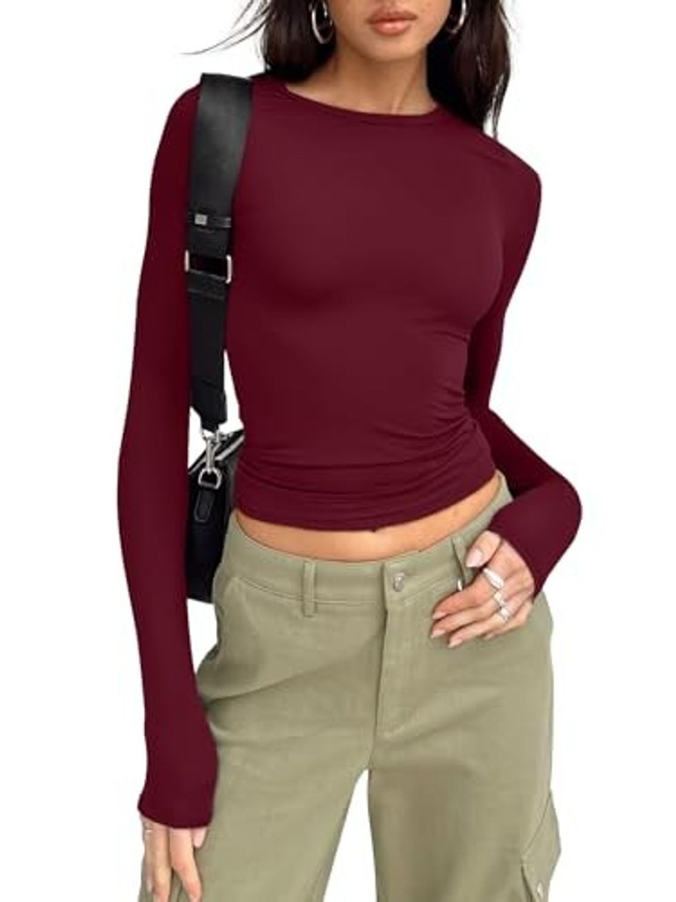 There is no debate that burgundy is the hottest color of winter 2024. If you're a fan of wine red shades, you will love this dark red slim fit shirt from Trendy Queen. This long-sleeve shirt is made of 88% polyester and 12% spandex for lightweight comfort that is perfect for layering. You'll love that this super soft and high-stretch fabric offers a second-skin feel.