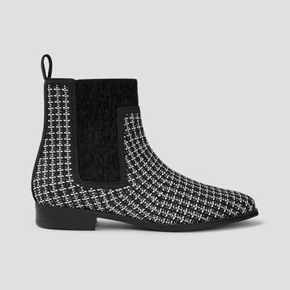 For a cute and trendy winter look, make a statement with these slip boots from VIVAIA. In a stunning black tweed design, these waterproof ankles are sure to add a touch of elegance and practicality to your look. Designed with a sleek square toe and an ankle-high shaft, this stylish boot features soft velvet elastic for extra sophistication. You'll love that this insole delivers all-day walking comfort, perfect for wearing on rainy or snowy days without sacrificing style.