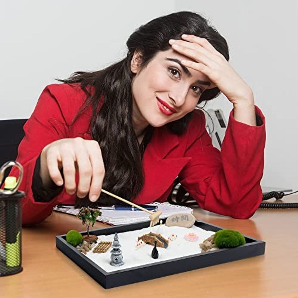 Peace and tranquility abound when practicing quiet meditative activities like arranging and tending to a mini-zen garden. Something like this is small enough to fit any space and serves as a kind reminder to take a break occasionally.