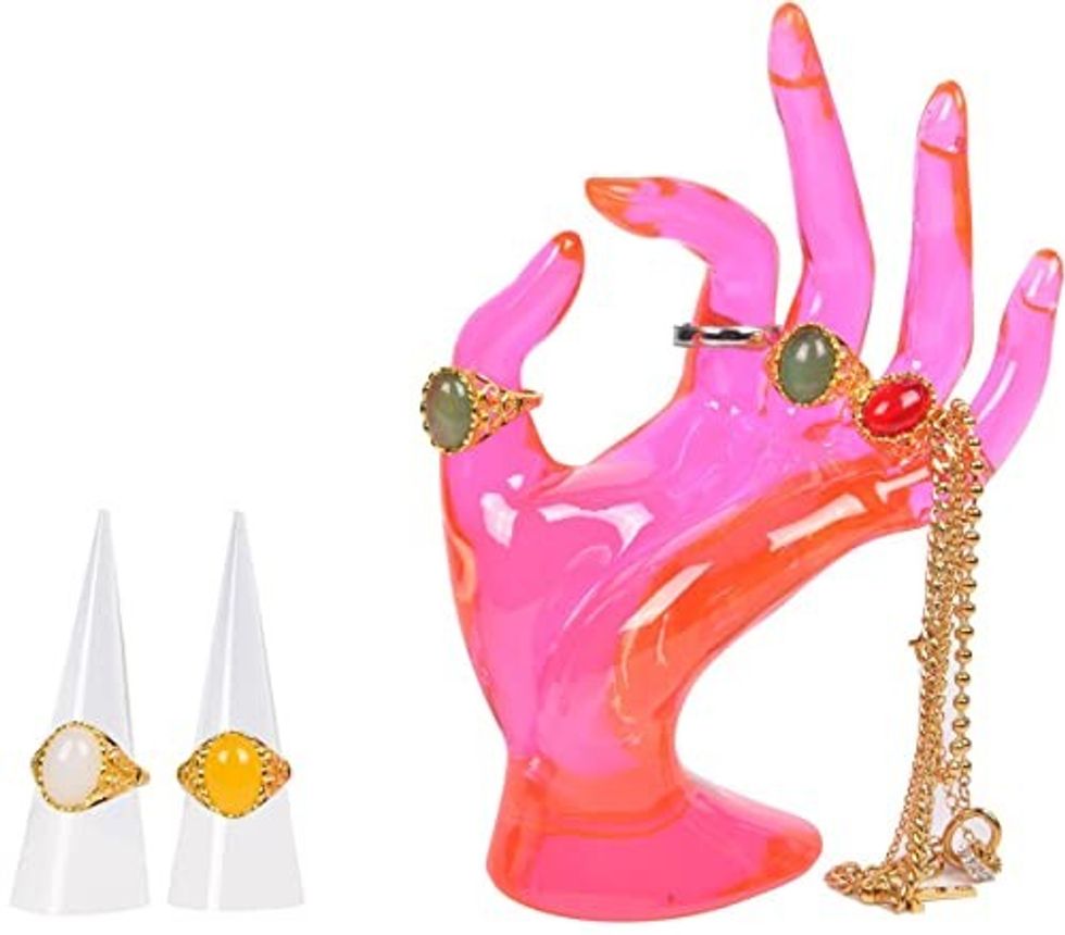 This polyresin blend hand mannequin makes the perfect display space for an assortment of rings and bracelets. The translucent hot pink sheen reflects beautifully in the sun for an eye-catching piece on top of your vanity.