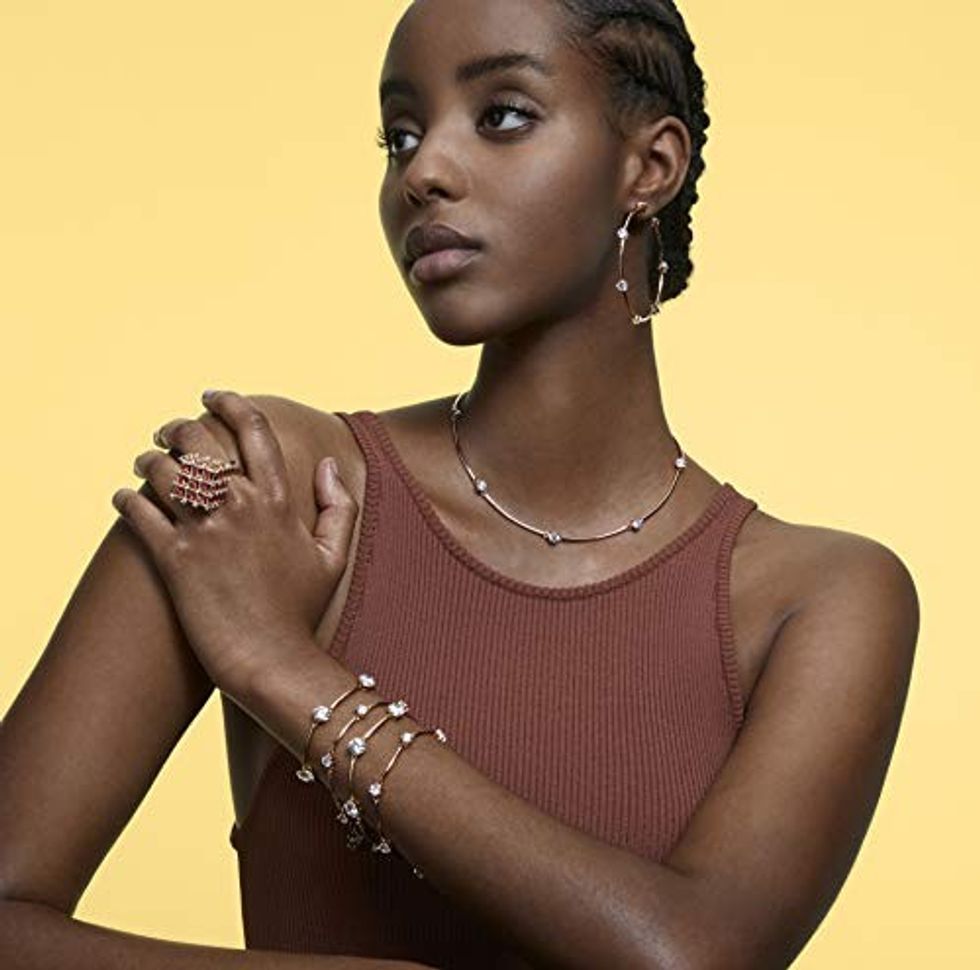 You can't go wrong with giving a gift from Swarovski Crystals. These hoop earrings are dotted with round sparkling white crystals on a rose gold frame, making them a stellar holiday gift.