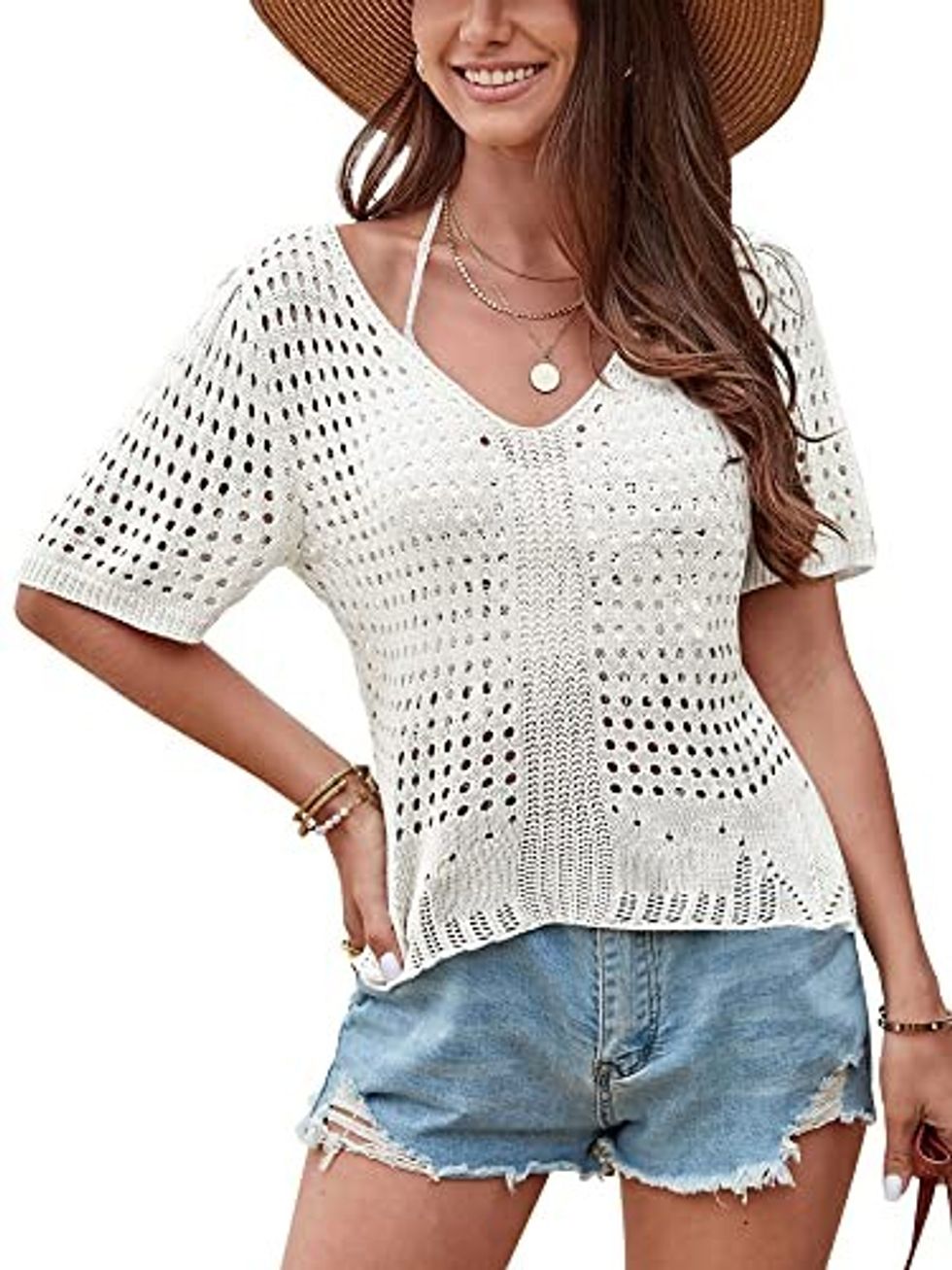 While fashion moved away from crochets in the colder months, we're seeing a return of this trend from last summer. Refresh your crochet styles with this short sleeve cover up that works over your favorite camis.