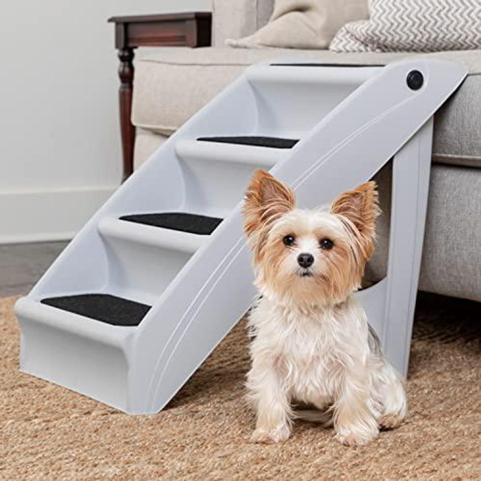 I wanted to make it easier for my little furry friend to come cuddle with me on the bed, and these folding pet steps were the perfect solution! Since she is so small, she can’t get up to the bed without using these steps, and it was so easy to train her to use them in no time! Plus, it is very sturdy and durable, yet lightweight, so it is both safe and easy to use.