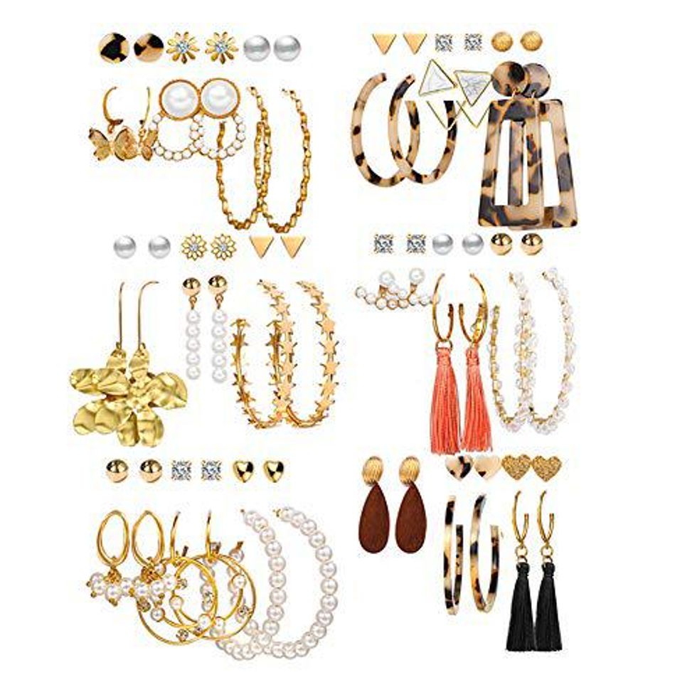 Why choose just one pair of earrings and jewlery to wear this New Year's when you can have 36 different kinds of earrings and accessories! This earring pack comes with just about every kind of shape, style and design of earring that you can imagine! Whether you looks hoops, studs, flowers or chains... There is truly something in this accessory pack for everyone! I like the cheetah print ones!