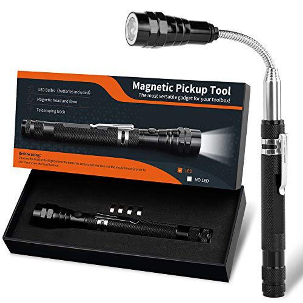 You know when you drop something in a super hard to reach place and you just decide to leave it because it's too hard to pick up? Well that won't happen again with this LED magnetic pickup tool. It can be extended to 22 inches and helps pick up things in all those nooks and crannies.