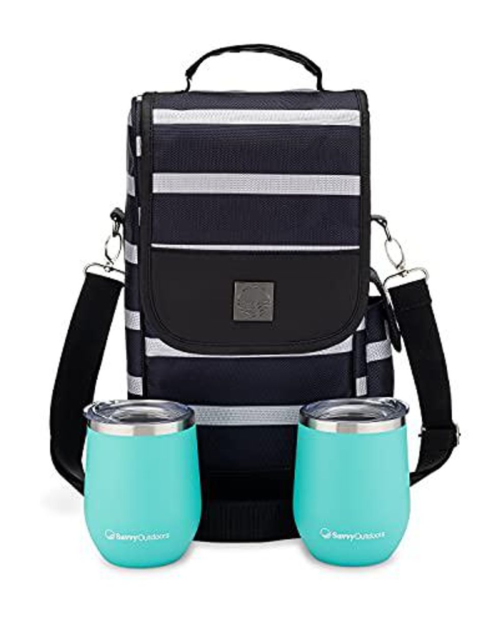 With space for two bottles of wine as well as two glasses, this tote bag is the perfect companion on your next picnic. It's also insulated so that your white wines stay chilled while in transit — and every order includes two stemless cups made from premium, insulated stainless steel.