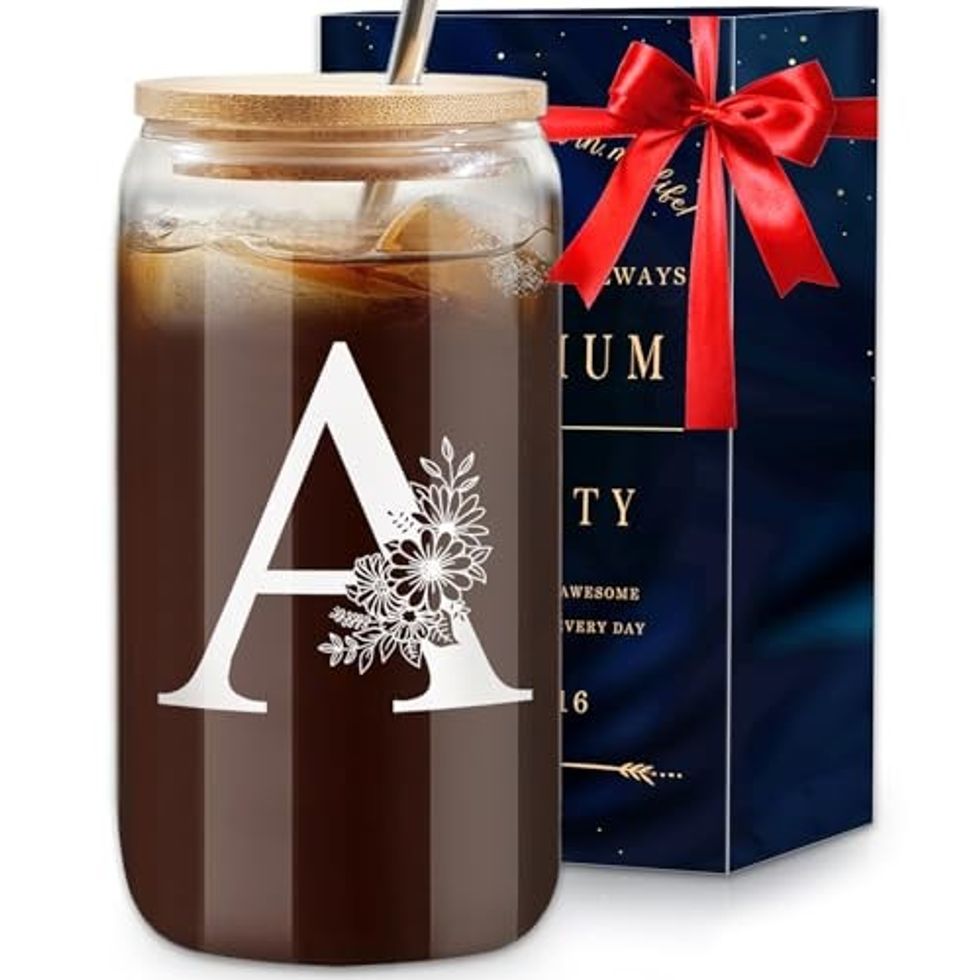 This 16oz monogrammed glass makes a great gift for enjoying beverages at home or on the go. You can personalize it with any letter and choose from multiple design options to match their style.