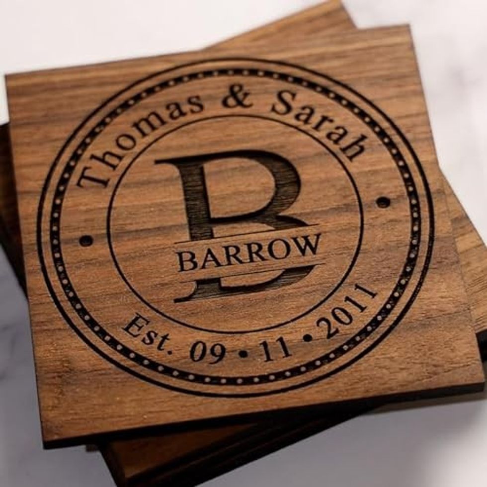 These coasters have a rustic charm that will complement any decor theme. They're easy to customize with a variety of engraving options, making them both functional and aesthetically pleasing.