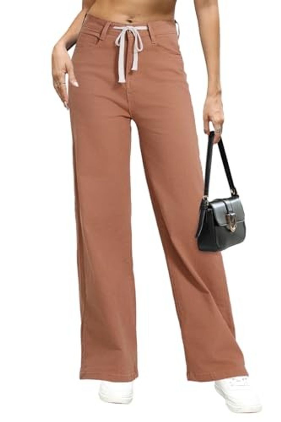 Wear these super comfortable drawstring pants with all your favorite outfits, no matter the season. This pair of high-waisted jeans is cozy for winter but not too heavy for spring.