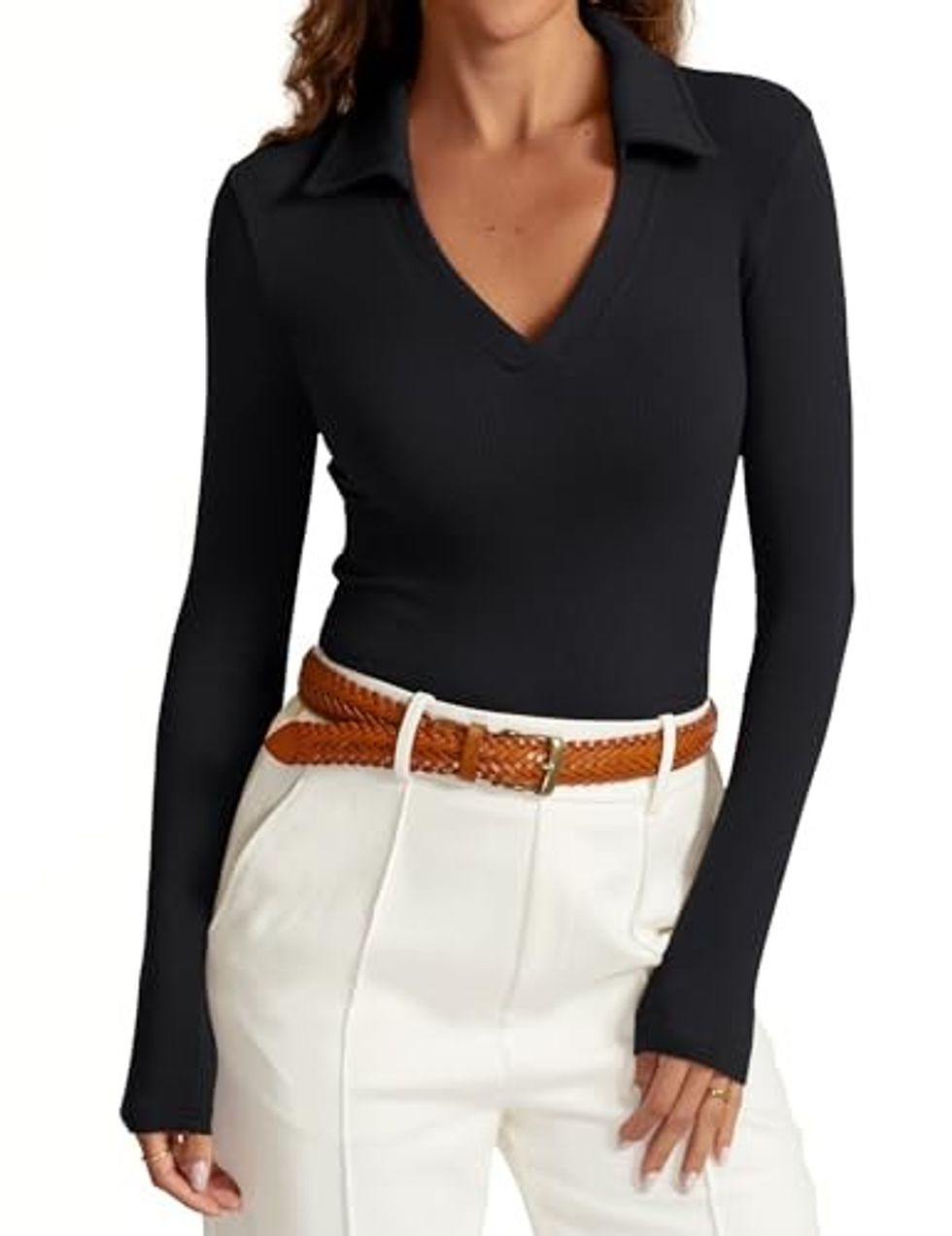 Take this elegant, upscale polo with you from winter to spring and again from fall into winter. The collared top is beautiful and figure-hugging, showing off your curves and looking great with a nice skirt.