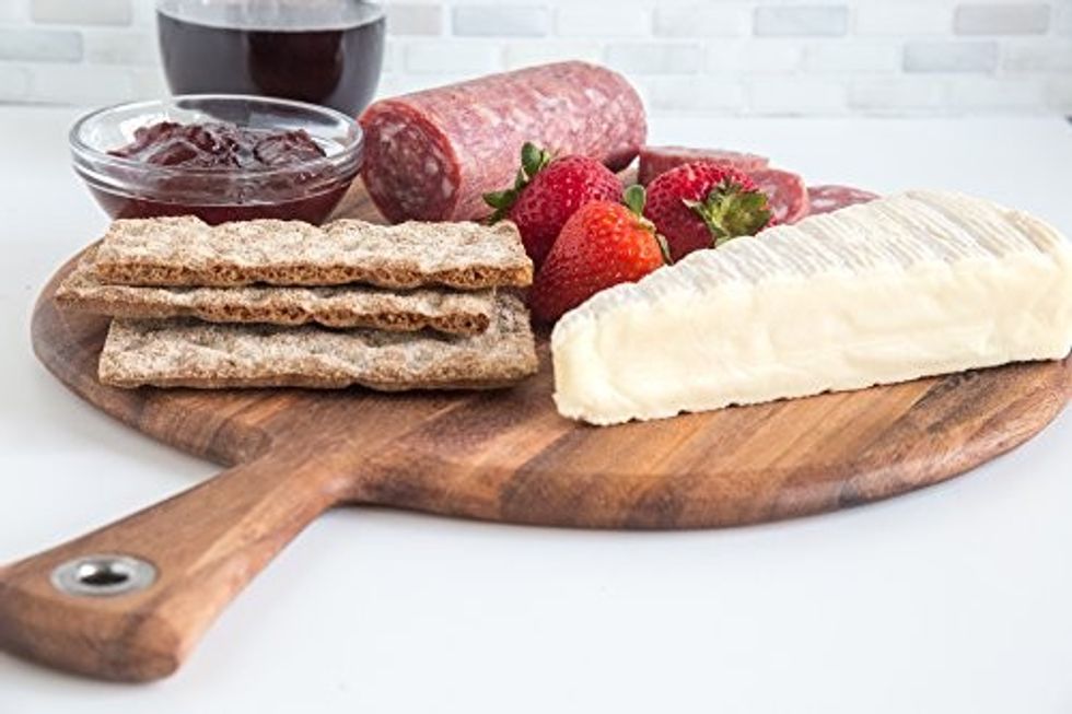 This round acacia paddle adds an organic, natural element to your space with its rich acacia wood tones and smooth finish. Its timeless design enhances the warmth and simplicity of your kitchen or dining area, fostering a serene and inviting environment.
