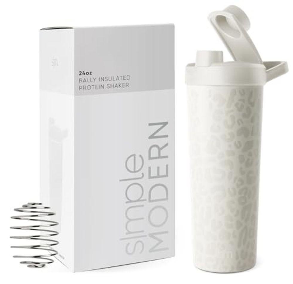 The steel blender ball in this bottle works to mix your protein shake and avoid any lumps. The double wall insulation can keep drinks at your ideal temperature, plus the lid is leak-proof to avoid spills.