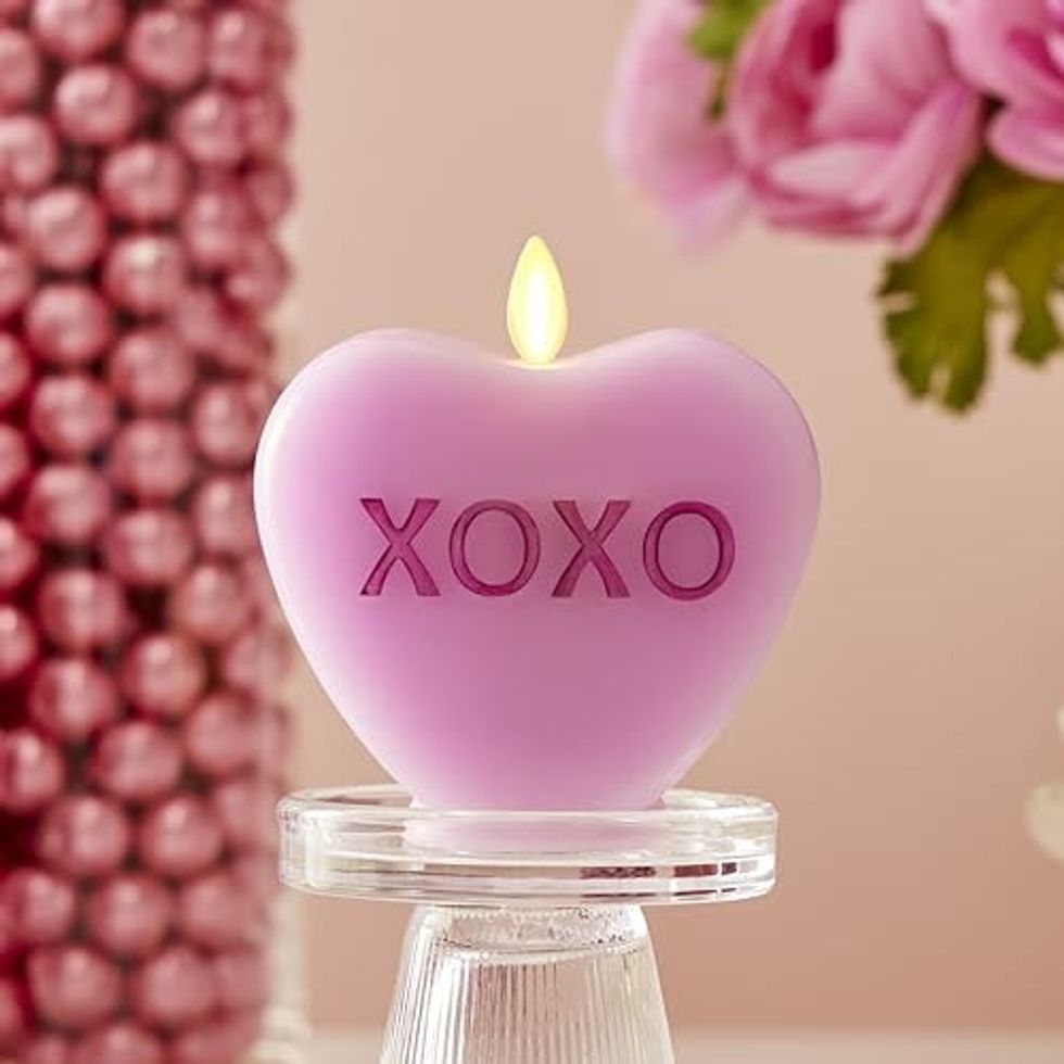 Candy hearts are a classic and one of the sweetest ways to decorate. This fun candle comes in four different candy heart messages and is battery-operated, so you can use it again and again.