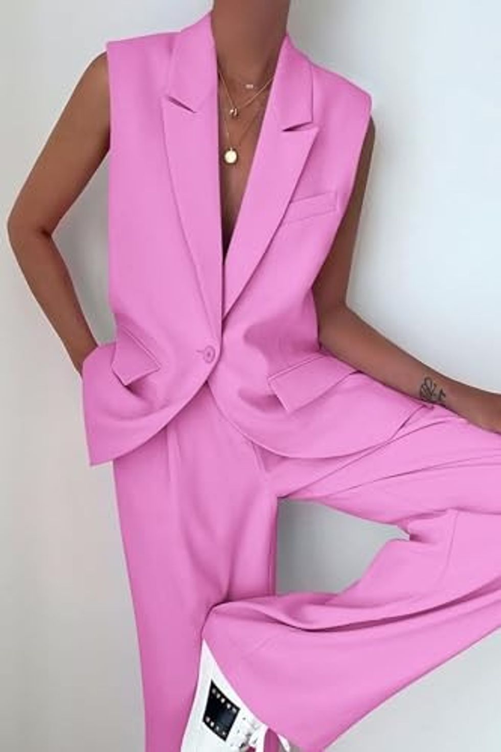 If you like to wear styles that are effortlessly cool and chic, this suit set is for you. The oversized vest and baggier pants are sure to make a statement this Valentine's Day.