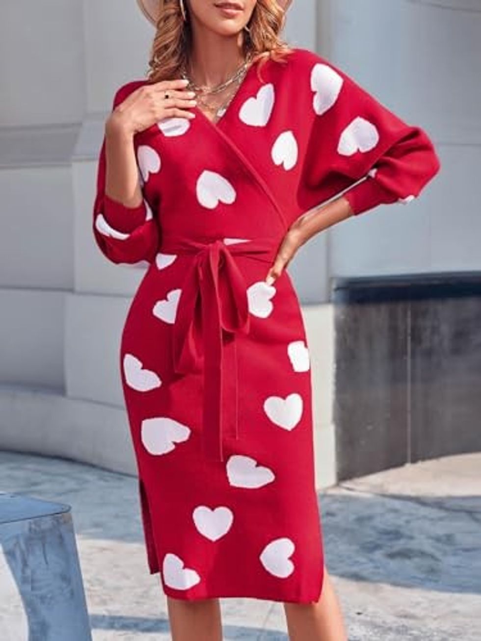We love the playful print of this sweater dress, and the hearts are so fitting for the occasion. The soft fabric is perfect for long wear, and the tie-waist can create a cinched-in silhouette.