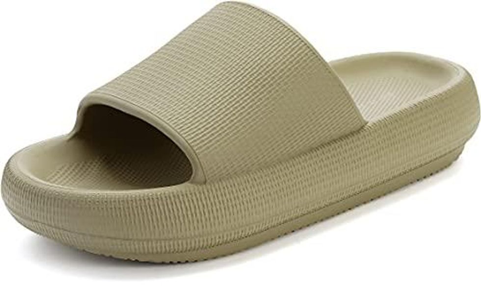 Cloud Slippers are another item that is a #1 Best Seller. This particular style is unisex, and the size guide lists both the women's and men's sizes. The sole is 1.7" thick and provides "ultimate support and comfort." Made of Ethylene Vinyl Acetate. Available in 12 colors.