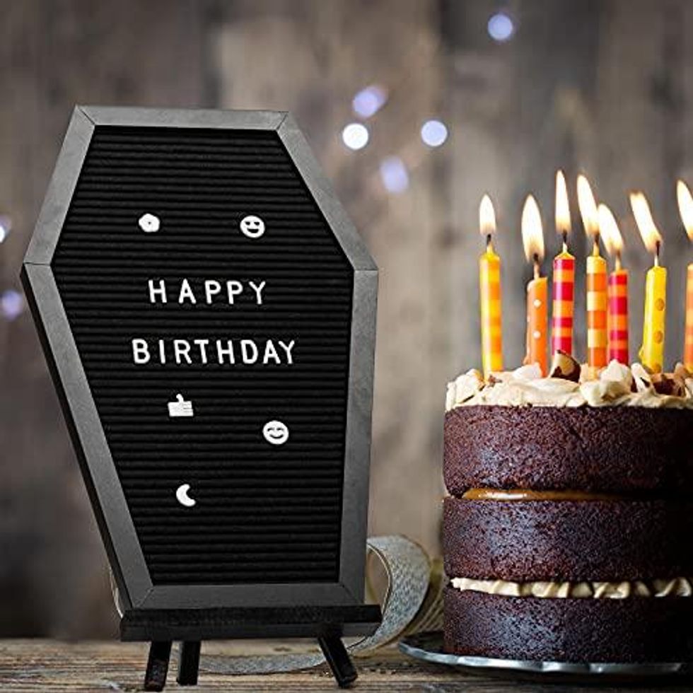 Frequently seen in social media photography as letter boards are trending. The Gothvanity Coffin Letter Board will add that Gothic home decor spooky touch to your bedroom, bathroom, living room or any space that could use a little more of the macabre. It can go on a tabletop or wall. It's finished with durable wood and a thick black felt board.
