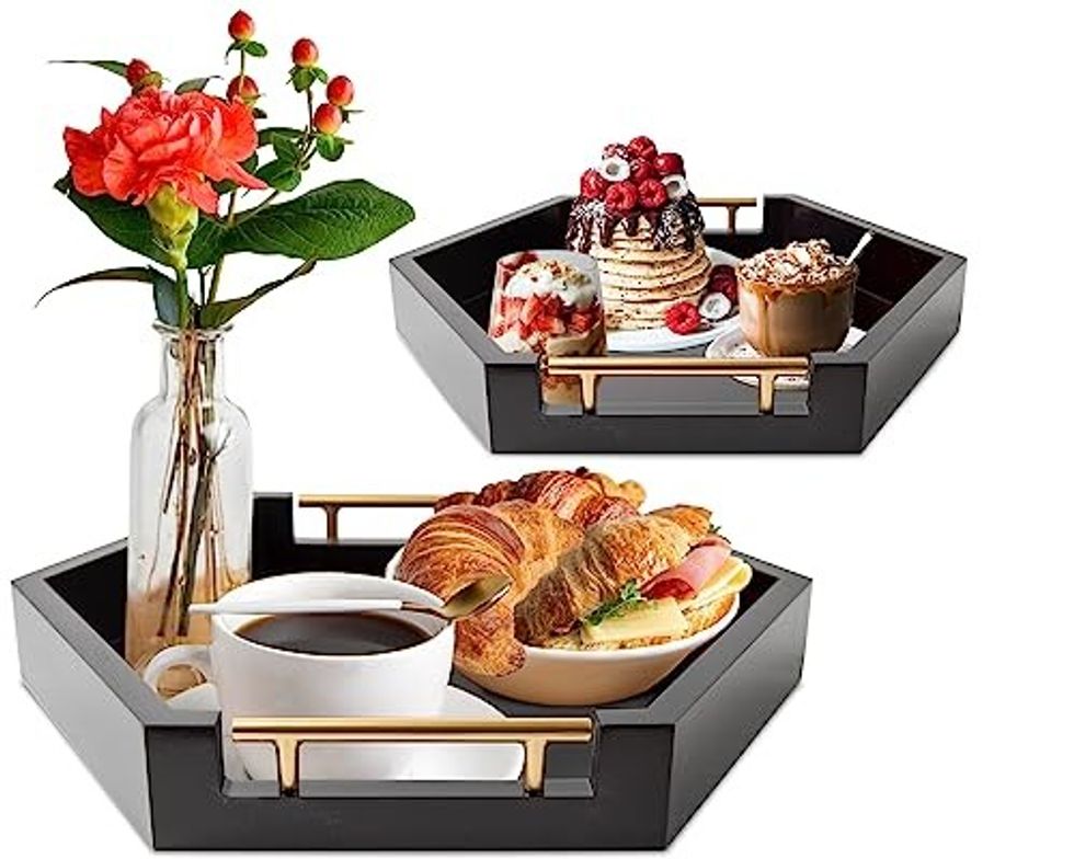 Honeycomb Serving Trays with Golden Handles add a touch of elegance to any dining table or serving arrangement. Their unique design and golden accents make them a standout choice for entertaining guests.