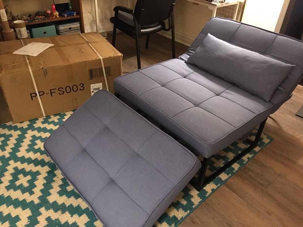 This ottoman is genius! Not only is it a great place to put up my feet at the end of a long day. But when someone comes to stay with me, I can also fold it out to be an extra couch OR even an extra bed for them to sleep on.