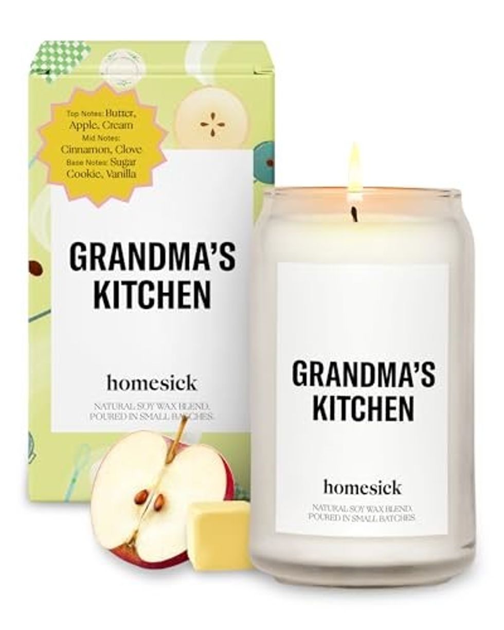If you're looking for a comforting way whenever you need to feel close to home, this Homesick Scented Candle aims to put a smile on your face. Grandman's Kitchen evokes the scent of grandma's warm apple pie with butter, apple, and cream notes, enriched by mid notes of cinnamon and clove. The candle is 13.75 ounces.