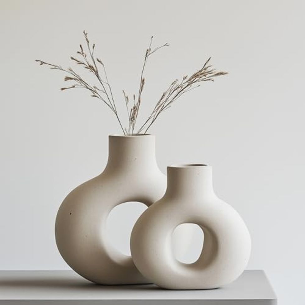 These ceramic flower vases are an abstract yet minimalistic design that will elevate the look of any dining room table, bookshelf, or entertainment stand.