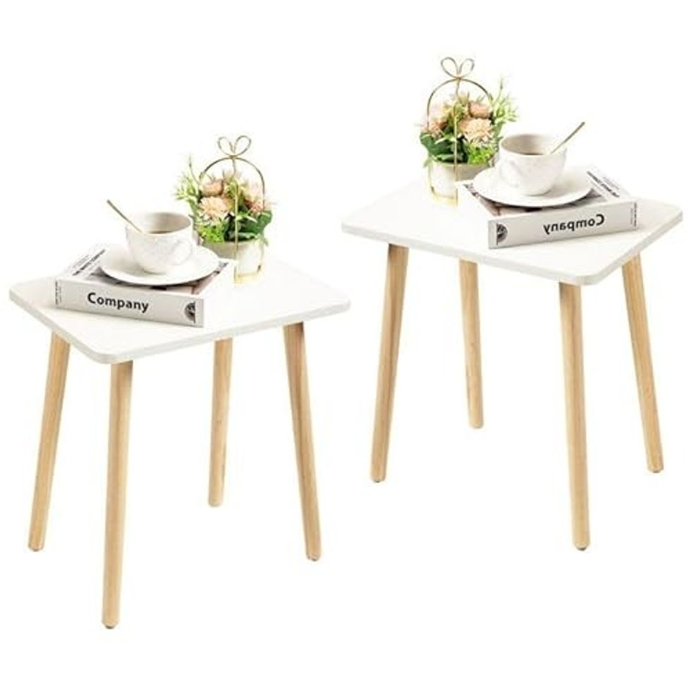Whether styled as a sofa side table or a nightstand, this set of two wooden-leg tables is the perfect modern addition anywhere you need added surface space without taking up too much room.