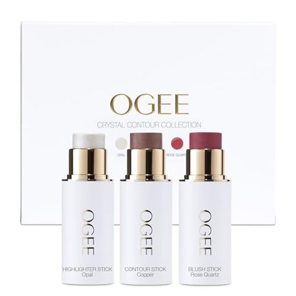 Do you want to perfect the 'no makeup' look? These contour sticks can help you achieve that goal. The set includes copper to bronze, rose quartz for blush along with opal to highlight. We love that the sticks contour while stimulating collagen production and skin firming with trace amounts of caffeine.