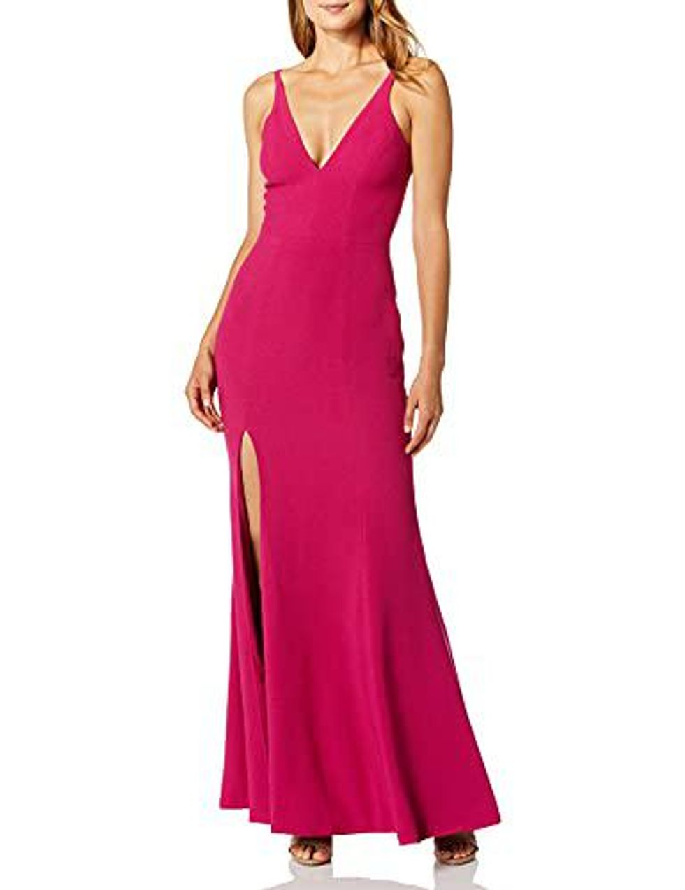 @inmyjeans put us on to the Dress The Population Iris Dress, a figure-hugging and very flattering spaghetti strap long dress with a plunging neckline. It has a flattering silhouette and is available in 18 different colors.