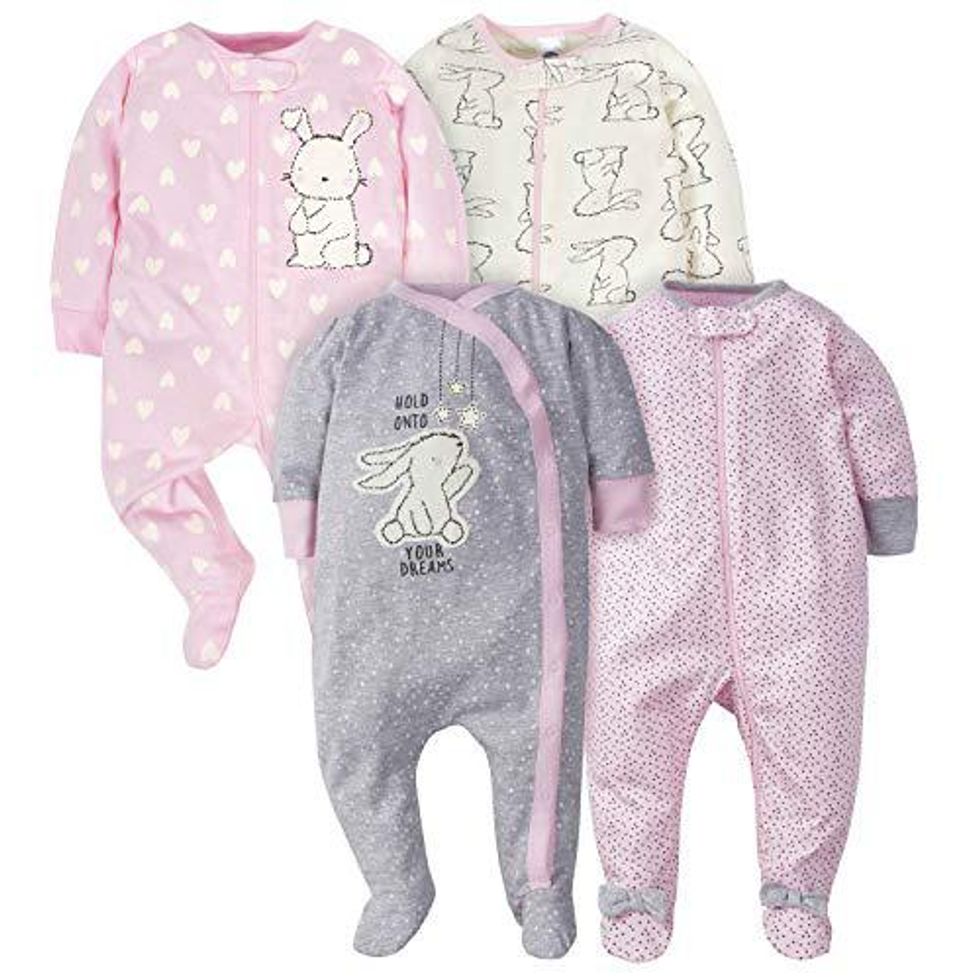 These highly-rated Baby Sleep 'N Play Onesies have a few selected styles up to 18% off, and each pack includes four long-sleeve Gerber sleep n' plays. With front zippers with safety tabs for more manageable changes, they are super comfortable while the baby rests or romps.