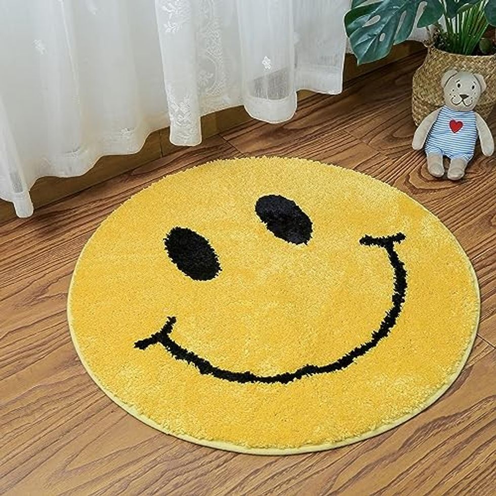 See it on AmazonFind it on WalmartStart the Day Smiling on a Smiley Face Rug