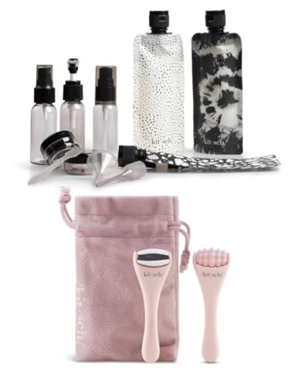 Kitsch’s travel set is beauty-obsessed girl math. With 11 matching containers, from pump bottles to cream jars, it turns your toiletry routine into something that feels organized and intentional. The monochrome aesthetic makes it feel more like a curated collection than a messy bag of minis.