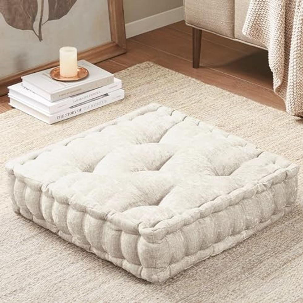 Need some additional seating? Choose these comfortable floor pillows that feature a scalloped edge and a luxurious appearance.